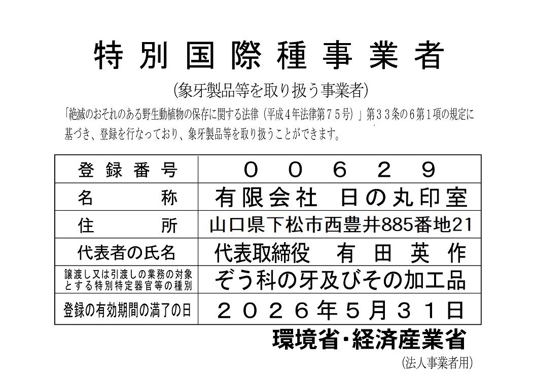 法人の会社設立印、ゴム印、など、ほかの商品は、今まで通りご来店ください。